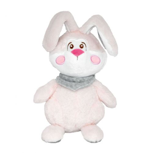 Мила іграшка у вигляді пухнастого зайчика з мʼякою шорсткою та довгими вушками. Очі пластикові. Дуже мʼяка і приємна на дотик. Розмір іграшки: 34х25х13 см. Виготовлено в Україні.