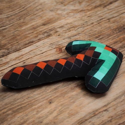 Мʼяка іграшка “Кирка” – предмет з гри Майнкрафт (Minecraft). Допоможе здобути будь-який блок завдяки своїй алмазній будові. Розмір іграшки – 36 см. Виготовлена зі штучного хутра, має синтетичний наповнювач та пластмасову фурнітуру. Рекомендовано для діток старше 3 років.