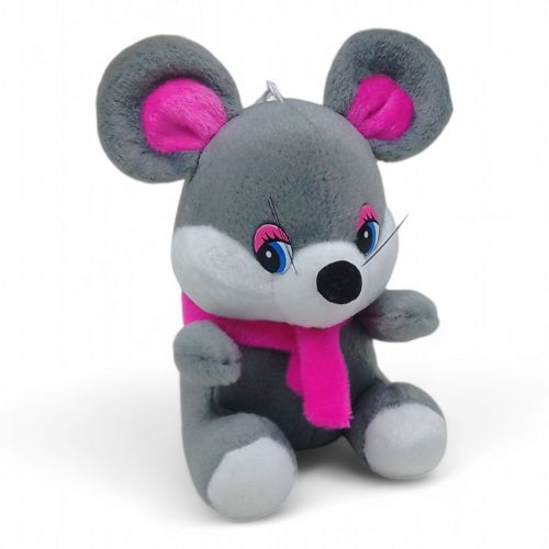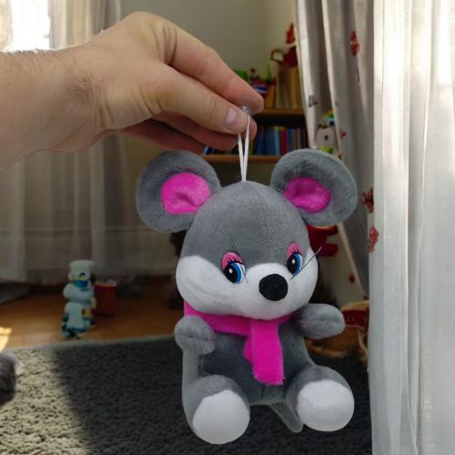 Забавна мʼяка іграшка у вигляді мишки, яка одягнена в красивий шарфик з квіточкою. Має мотузочок з присоскою, завдяки чому іграшку можна чіпляти до скла і гладких поверхнях.