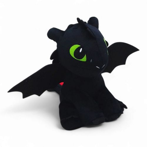 Мʼяка іграшка “Беззубик”, персонаж серії “Як приборкати дракона”, чорна нічна лють. Має особливий хвостовий плавець, сконструйований гикавкою, завдяки якому Беззубик може літати. Розмір іграшки – 30см. Виготовлений зі штучного хутра, має волоконний силіконізований поліуретановий наповнювач та пластмасову фурнітуру. Рекомендовано для дітей віком від 3 років.