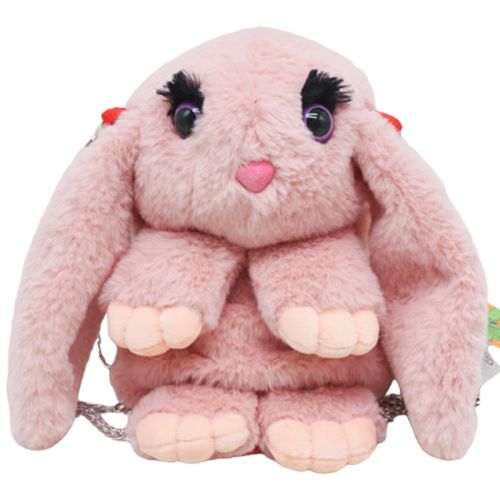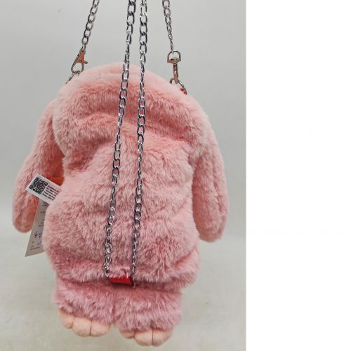 Милий дитячий рюкзак у вигляді кролика. Дуже мʼякий і приємний на дотик, виконаний з яскравої та пухнастої тканини. Оченята пластикові. Оснащений двома металевими лямками-ланцюжками на карабінах. Є одне відділення на блискавці, в яке можна покласти телефон, записник, ключі або інші невеликі аксесуари. Розмір рюкзака – 27х20х11 см.