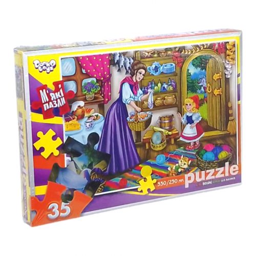 Яскраві пазли на 35 елементів. Деталі великі і мʼякі на дотик. Розвивають логічне мислення, дрібну моторику рук, посидючість. Розмір готової картинки: 33 х 23 см.