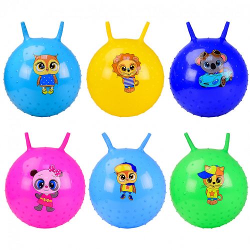 Дитячий мʼяч для фітнесу (фітбол). Призначений для корекції постави, занять лікувальною фізкультурою, а також розвитку та зміцнення мʼязів спини та черевного преса. Має 2 роги для підтримки під час стрибків на мʼячі. Діаметр приблизно 45 см. Продається у спущеному вигляді. Виконаний з якісних та міцних матеріалів.