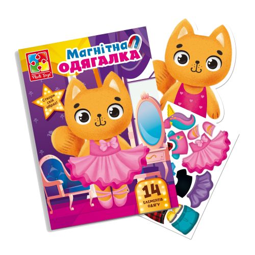 Комплектація: 14 елементів одягу та аксесуарів на магнітах, кішка-основа