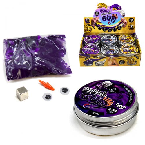 Магнітна жуйка для рук (хендгам). Магнітний хендгам складається з магнітних частинок мікронного розміру, які надають йому унікальну властивість: він намагнічується і управляється магнітом. При відсутності магніту поводиться так, як інші жуйки для рук – може стрибати, як м’ячик, його можна рвати і розтягувати. Різні кольори. У металевій баночці. Магніт в комплекті. Ціна за 1 баночку (12 в коробці).
