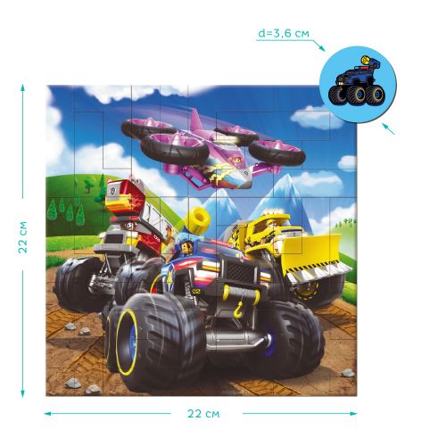 Барвисті пазли на 40 елементів характеризується ідеальною відповідністю елементів. Розмір готової картинки: 22 х 22 см. Така іграшка є веселою можливістю поглянути на те, на що здатні магніти та як гарно деталі тримаються між собою. Набір стане виграшним варіантом подарунка як для хлопчика, так і дівчинки. Розвивають логічне мислення, дрібну моторику рук, посидючість. Відмінний спосіб провести час із сімʼєю чи друзями. Для дітей віком від 5-ти років.