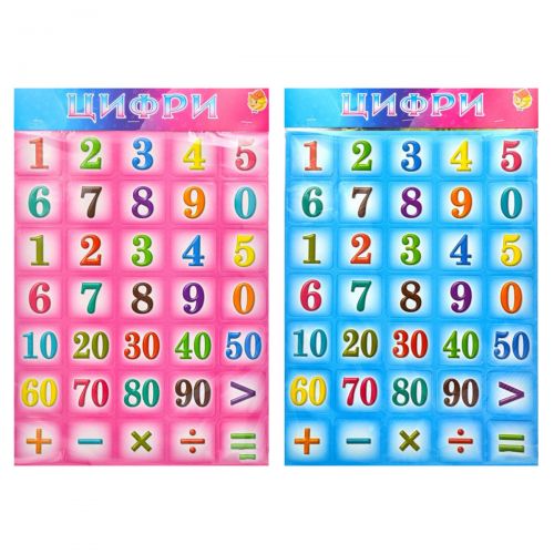 Магнітні цифри. Набір складається з 35-и цифр і математичних знаків для навчання основам арифметики. Грати і вчитися дитина зможе не тільки за столом, а й на будь-який металевої поверхні. Розмір однієї магнітної картки – 5 * 5 см. В асортименті.