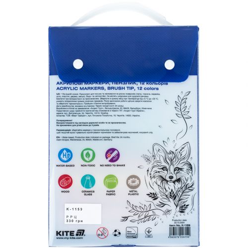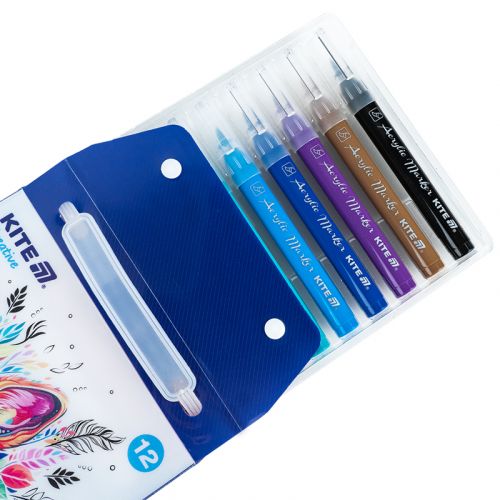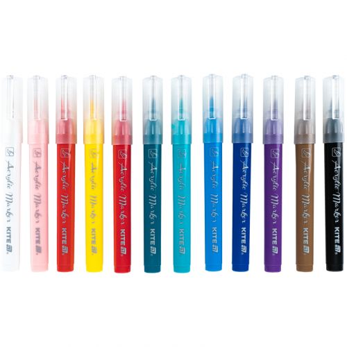 Акрилові маркери на водній основі. Яскраві і насичені кольори. Чорнила безпечні для здоров’я. Пишучий вузол у формі пензлика. Призначені для письма та малювання на різних поверхнях. Пластикова упаковка з ручкою.