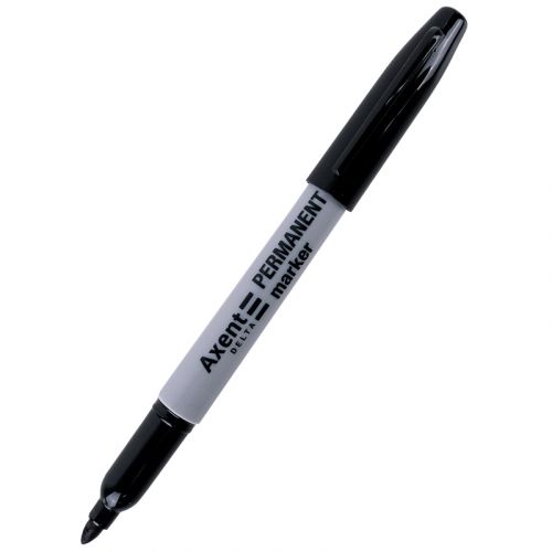 Перманентний маркер Axent чудово підходить для нанесення стійких написів практично на будь-якій поверхні (картон, дерево, камінь, метал, гума, шкіра, скло, поліетилен). Написи стійкі до стирання, дії вологи. Слід чорнила не розтікається. Чорнило на спиртовій основі, не токсичне. Круглий пишучий вузол. Товщина письма 1 мм.