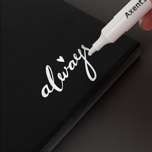Перманентний маркер Axent чудово підходить для нанесення стійких написів практично на будь-якій поверхні. Написи стійкі до стирання, дії вологи. Слід чорнила не розтікається. Чорнило на водній основі, не токсичне. Круглий пишучий вузол. Товщина письма 2 мм. Ідеальний для написів на темних поверхнях.