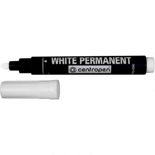 Білий перманентний маркер для стійких написів практично на будь-якій поверхні. Чорнило на водній основі – не просочується крізь папір, світлостійке. Напис стійкий до впливу вологи, стирання, атмосферних впливів. Круглий пишучий вузол. Ширина сліду 2,5 мм. Пишучий вузол витримує велике навантаження без деформації. Маркер потрібно зберігати в горизонтальному положенні. Не висихає без ковпачка протягом 5 днів. Ідеальний для написів на темних поверхнях.