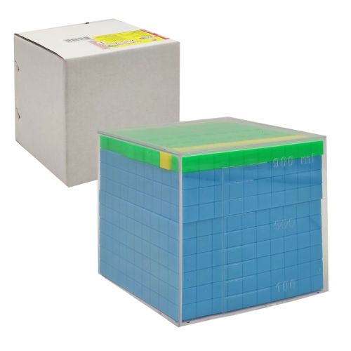 Куб складається з 3-х пластикових мірних блоків трьох розмірів: кубик (одиниця), смужка (10 одиниць) та пластина (100 одиниць). Куб може використовуватися для вивчення таких математичних понять, як: десяткова система, одиниці, десятки, сотні, тисячі, обсяг та площу. У наборі є 9 пластин, 9 смужок та 10 кубиків.