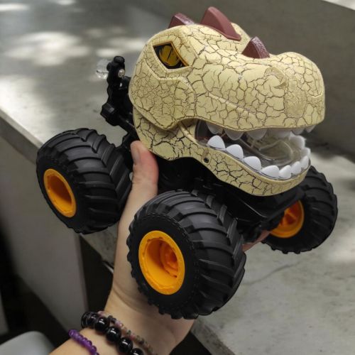Позашляховик на радіокеруванні виконаний у вигляді голови динозавра. Має великі гумові колеса, які забезпечують хорошу прохідність майже по будь-якій поверхні. Їздить уперед і назад, повертає ліворуч та праворуч. Оснащений парогенератором, який імітує дим із пащі динозавра. Також у машини світиться корпус. Розмір машинки – 17х16,5х15 см., діаметр коліс – 7 см. Працює від акумулятора (є в комплекті), пульт від 2-х батарейок АА (немає в комплекті).