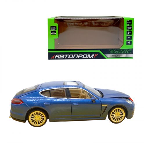 Машина “Porsche Panamera S” із серії “Автопром”. З металевими елементами. Інерційна. Висока деталізація. Відкриваються двері і капот. Масштаб – 1:24. Світло передніх і задніх фар, підсвічування салону, звук мотора, сигналізації і гальм.