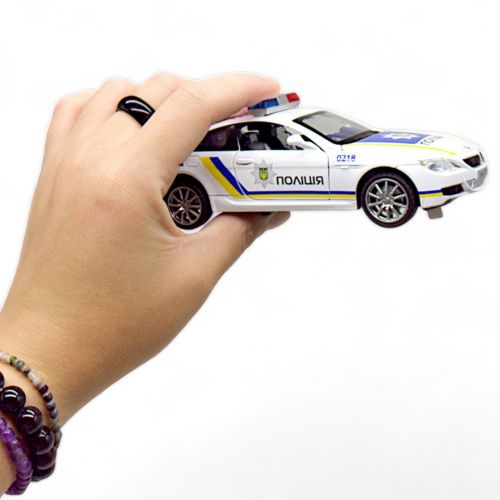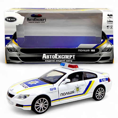 Машинка металева “Поліція” із серії “Авто Експерт”. Модель дуже якісна та деталізована. Інерційний механізм, прогумовані колеса. Відчиняються передні двері, багажник та капот. Світло фар та реалістичні звукові ефекти. Укомплектована машинка в презентабельну картонну коробочку зі слюдою. Масштаб – 1:32.