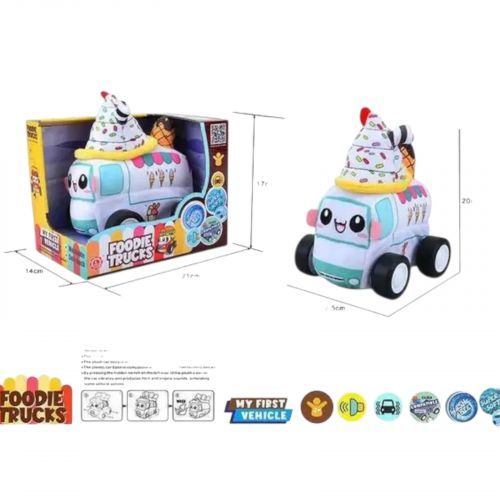 Мʼяка іграшка у вигляді миленького транспорту! Іграшка має звукові елементи, достатньо натиснути на кнопку збоку автомобіля, щоб пролунала музика та звуки автомобіля. Чохол легко знімається, що дозволяє легко помити іграшку при забрудненні. Має гарні гумові колеса, що якнайшвидше пересувають машинку по різних поверхнях. Працює від 3 батарейок АА (немає у комплекті) Виконана з якісних та міцних матеріалів. Рекомендовано для дітей старше 3 років.