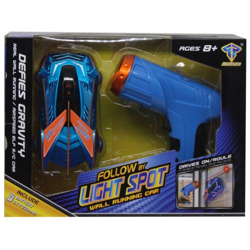Машинка антигравітаційна “Wall Running Car”. Турбіни, вбудовані в машинку всмоктують повітря, створюючи вакуум, утримуючи тим самим машинку в вертикальному положенні. Машина їздить по стінах і стелі, здійснюючи найрізноманітніші розвороти і трюки. Керування здійснюється за допомогою лазерного пульта-пістолета. Підсвічування фар. Розмір машинки – 15 см. Машинка працює акумулятора (є в комплекті), пульт від 3 батарей ААА (немає в комплекті).