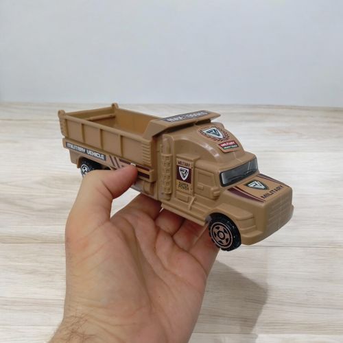 Пластикова машинка, виконана у вигляді військової вантажівки. Зелений колір прикрашені наклейками у військовій тематиці. Виготовлена з якісного та міцного пластику. Чудово підійде для гри як удома, так і на вулиці чи у пісочниці. Розмір машинки: 20 х 6 х 6 см.