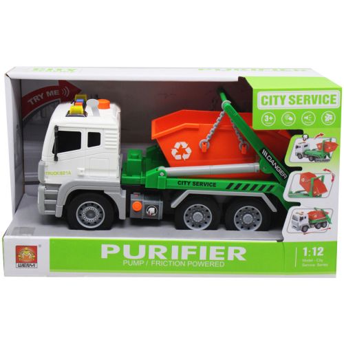 Дитяча інерційна машинка-сміттєвоз є яскравою і захоплюючою іграшкою для малюків. Інтерес додають музичні кнопки, які відтворюють характерні звуки. Є навіть світлодіодні елементи, які створюють додаткові візуальні ефекти. Основний ігровий момент повʼязаний з ковшем, що піднімається, який активується кнопкою на даху. Для повернення ковша у вихідне положення передбачено важіль на бічній частині машини, що робить іграшку ще цікавішою.