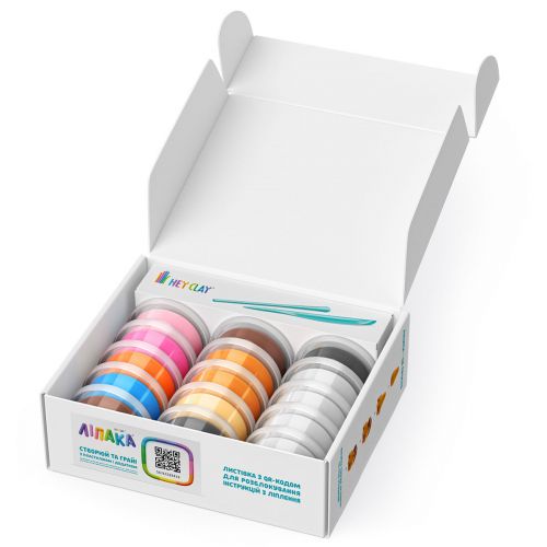 Меганабір пластиліну, що самостійно твердіє, розважить і малюків і дорослих. За допомогою анімаційних інструкцій в додатку “HEY CLAY” ви зможете зліпити 6 унікальних персонажів: Бігль Вокі, Бульдог Гіпно, Лабрадор Ням-Ням, Пудель Поппі, Комондор Муді та Далматинець Турбо. Пластилін твердіє на повітрі протягом 24 годин, після чого можна гратися створеними фігурками. До меганабору входить 15 баночок пластиліну різного кольору. В набір може входити до 9 різних кольорів (баночка може містити пластилін двох різних кольорів). Розімніть пластилін перед ліпкою! З пластиліну, що входить до набору, можна створити 6 персонажів, зображених на упаковці та описаних в інструкції (додатку). У кожному наборі ви знайдете код для доступу до відповідних героїв у додатку “ЛІПАКА HEY CLAY” з анімаційними інструкціями. Це унікальний додаток, з інтуїтивно-зрозумілим інтерфейсом, кумедною пластиліновою анімацією та інструкціями для малюків. Починаючи з простих форм та рухів, дитина з легкістю створить обраного героя, освоїть основні прийоми та техніки ліплення. Що, своєю чергою, сприятиме розвитку креативності та спонукатиме до створення власних шедеврів! Разом з пластиліном малюки розвивають дрібну моторику, вчаться концентрувати увагу, розвивають креативність та світогляд. Рекомендовано для дітей від 3 років.