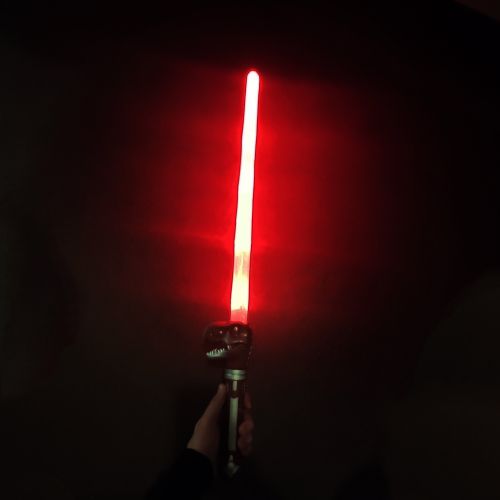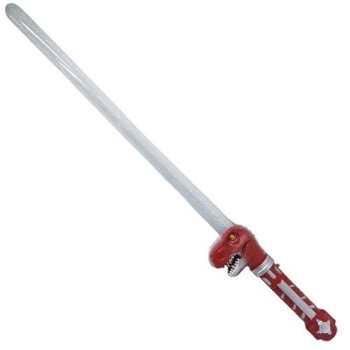 Дитячий меч із ручкою у вигляді Тиранозавра – яскрава іграшка для маленьких шукачів пригод! Меч довжиною 70 см оснащений світловими ефектами та видає реалістичні звуки гарчання динозавра. Ідеальний для активних ігор та розвитку уяви дитини. Працює від 3-х батарейок АА (немає в комплекті).