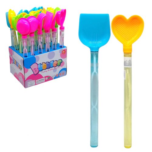 Мильні бульбашки з кришкою у вигляді лопатки, грабельок чи ситечка. Оснащені рамкою, що має 2 отвори. Прозора пляшечка наповнена якісним мильним розчином. Рамка з великими отворами дає можливість створити просто вражаючі мильні бульбашки. Для дітей старше 3-х років.