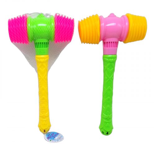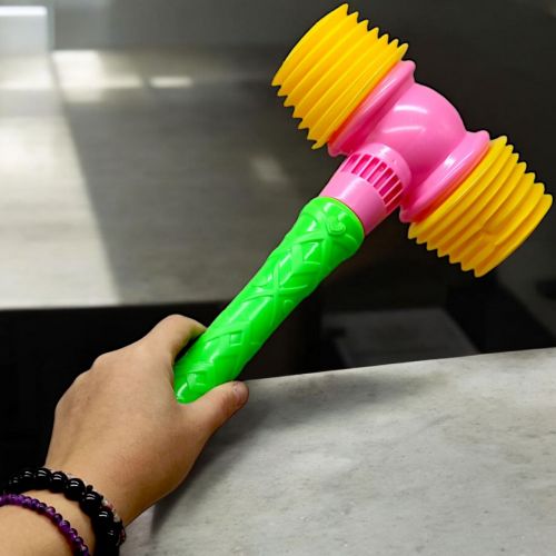 Іграшковий молоточок-пищалка є кумедною та безпечною іграшкою для дітей. Він має мʼякі гумові грані, які дозволяють дітям грати без ризику травмування. Довжина молоточка становить 40 см. Усередині ручки заховано брязкальце, що створює приємні звуки при кожному ударі або струшуванні, що привертає увагу дітей та сприяє їхньому розвитку.