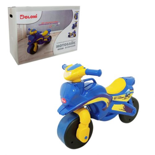 Каталка-толокар музичний “Патріот Мотобайк” синьо-жовтий. Дитина зможе самостійно кататися, відштовхуючись ніжками від землі. Широкі колеса мотоцикла забезпечують комфортну їзду в приміщенні і на вулиці. Особливість цієї іграшки – вбудовані музичні та світлові ефекти. 2 патріотичні пісні: “Ой у лузі червона калина”, “Доброго вечора ми з Україні”.