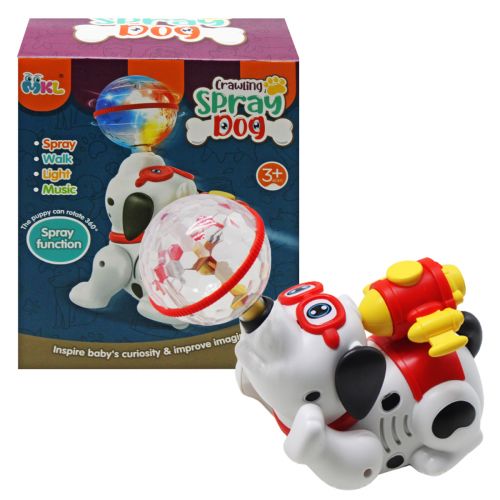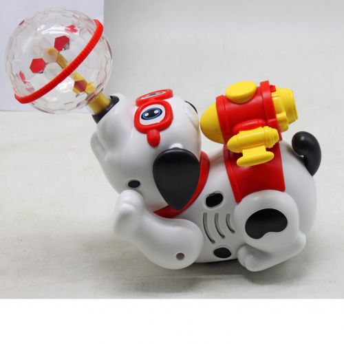 Весела і незвичайна іграшка у вигляді песика з рюкзаком-турбіною та мʼячиком на носі. Іграшка ходить, обертає мʼячик і обертається сама. З турбіни йде дим (пар). Для цього потрібно залити воду у спеціальний резервуар. Грає музика, яскраве 3D світло. Два режими: в одному песик ходить, а в іншому стоїть на місці (але при цьому є всі ефекти). Працює від 3-х батарейок АА (немає в комплекті).