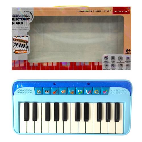 Мультифункціональне електронне піаніно що зацікавить не тільки дітей, а й дорослих! Завдяки різноманітним режимам клавіші піаніно можуть видавати цікаві звуки – від акордеона до гітари! А якщо набридне грати самотужки – не біда, в іграшки є музичний режим що дозволить прослуховувати пісні не граючи їх та які завжди можна поставити на паузу. В піаніно присутньо 14 білих та 10 чорних клавіш. Окрім цього в іграшки є режим що даватиме ударні інструментальні звуки під час гри, що доповнить музичні композиції.