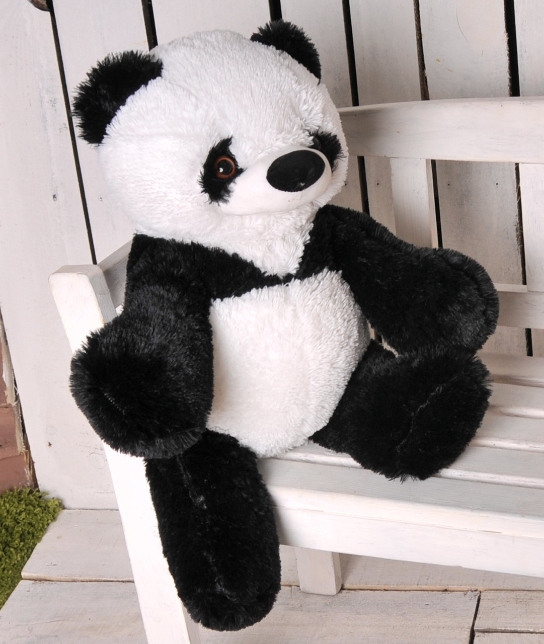 Плюшева панда висотою 75 см стане справжнім сюрпризом і для дитини, і для дорослого. Зростання плюшевою панди 75 див. Панда вже немаленька, але при цьому компактна і легко впишеться в кожен інтер’єр. Іграшку зручно піднімати на руки, спати з нею, брати в подорожі. Панда зроблена зі штучного хутра і холлофайбер. Ці матеріали сертифіковані, і не викликають ніяких захворювань. Ви можете сміливо купувати її для дитини від трьох років. Виріб можна прати вручну, воно не втрачає свого вигляду. Іграшка не збивається в грудки. М’яка іграшка Панда неймовірно схожа на справжнього звіра. Вона прикрасить інтер’єр кімнати, додасть їй особливий затишок.