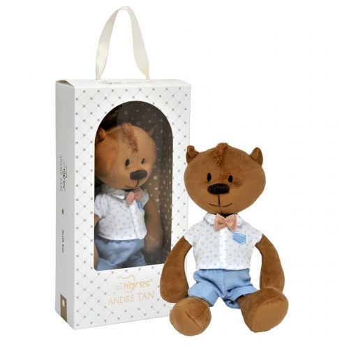 М’яка іграшка у вигляді милого ведмедика в красивому костюмчику. Іграшка м’яка і приємна на дотик, виготовлена з якісних матеріалів.
