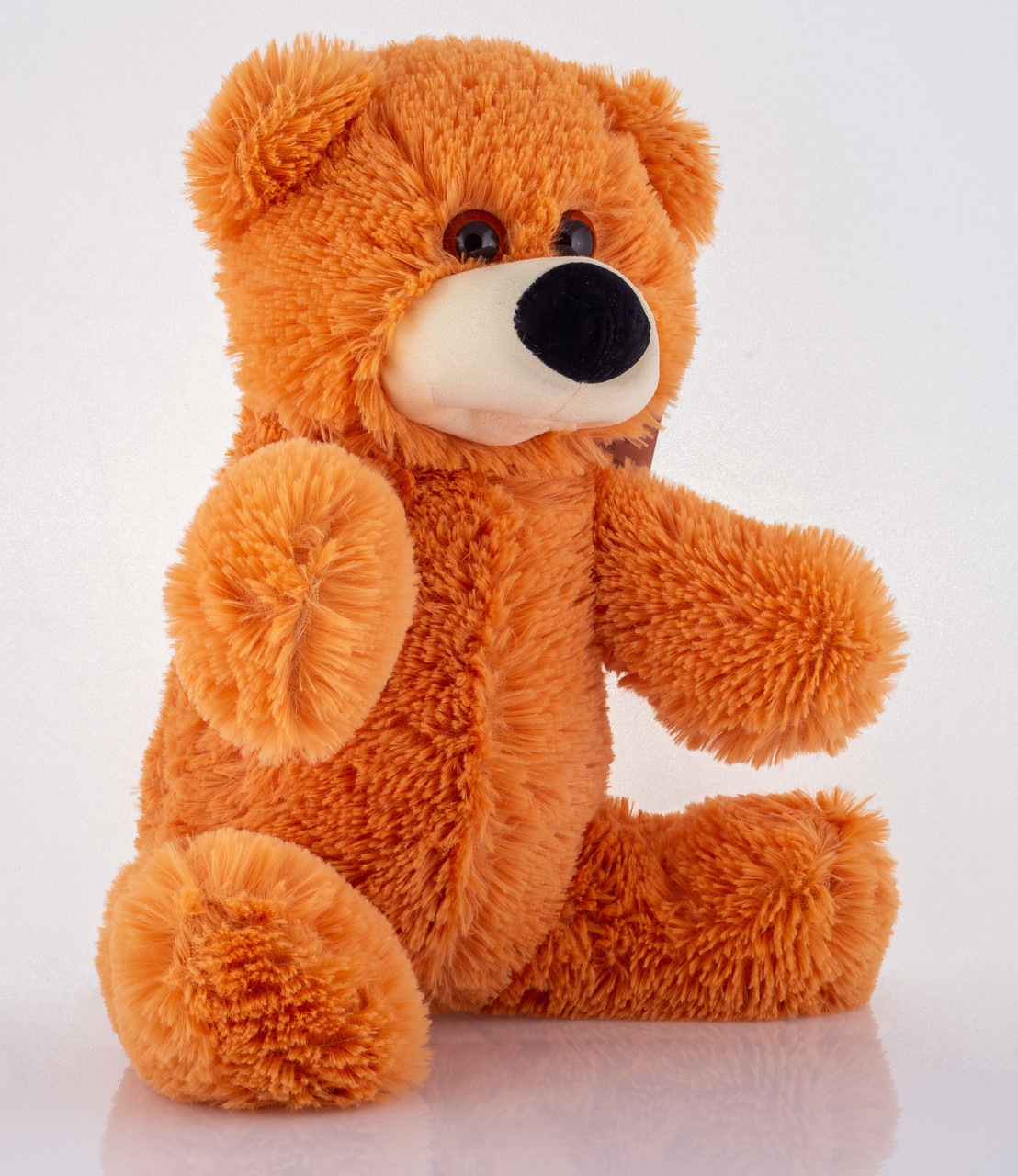 Плюшевий ведмедик Бублик 55 см медовий Кожен малюк мріє про пухнастий звір. Здійсніть його бажання — подаруйте ведмедик Бублі медового кольору. Він без проблем впишеться в будь-який інтер’єр і займе почесне місце в іграшковому арсеналі малюка. зроблений із якісного штучного хутра, який не накопичує пил і не збивається в грудочки. Наповнювачем виступає холофайбер, який є гіпоалергенним і надає виробу м’якості. Іграшку можна брати із собою, оскільки габарити дають змогу це робити. Невелика вага 390 г до снаги підіймати дитині віком від 3 років. Переваги: українське виробництво; гіпоалергенна якість машинне/ручне прання 30 градусів; швидка доставка; вакуумне паковання; очі міцно тримаються на кнопках.
