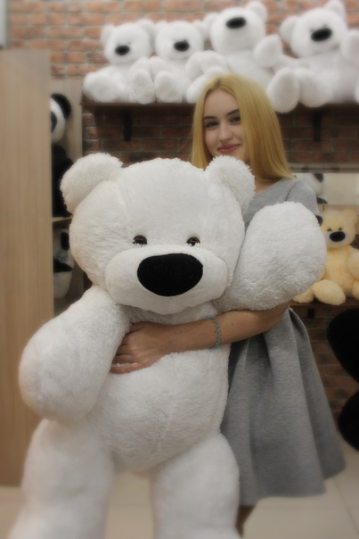 Білий – мрія романтичної дівчини і маленького непосиди. Він виглядає просто карколомно, і прикрасить вашу кімнату, внесе в неї красу і затишок. Іграшка виготовлена з штучного хутра і холлофайбер. Ці матеріали безпечні для дітей і дорослих. Вони не викликають алергію. Хутро пухнасте і приємний на дотик. Ведмедя можна прати вручну, і в машинці, що робить догляд за ним дуже простим. Висота 110 см і вага 2500г робить виріб габаритним. Рекомендуємо купувати Бублика для діток від 3-х років, щоб вони могли самостійно його брати в руки і переносити з місця на місце.