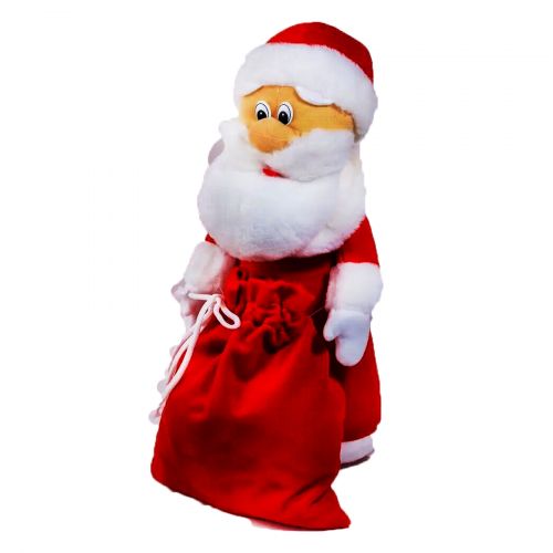 М’яка іграшка, яка стане чудовою новорічною декорацією. Виконана у вигляді Санта Клауса у святковому вбранні, яке тримає в руці баул, до якого можна покласти подарунки. Іграшка дуже приємна на дотик, виконана з пухнастої та приємної тканини. Розмір іграшки: 18х25х45 см.