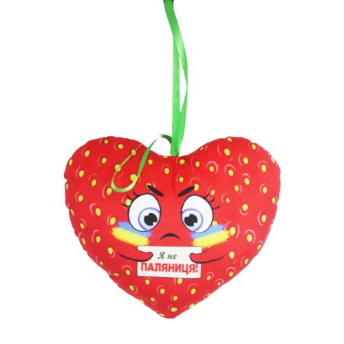 М’які іграшки у формі серця з оригінальним принтом. Подушка має малюнок полуниці та патріотичний принт. Серце на петельці, за допомогою якого його легко можна підвісити. Розмір 16х14х5 см. М’яка та приємна на дотик.