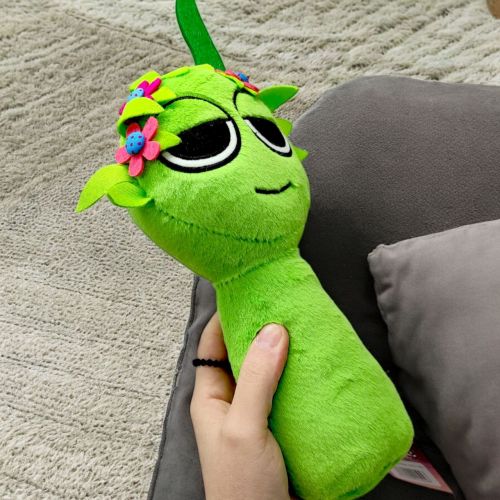Мʼяка іграшка “Спрункі Венерія”, персонаж музичної гри “Incredibox Sprunki”, Зелений Спрункі з темно зелений рогом. Розмір іграшки – 26 см. Завдяки своїм розмірам є чудовим компаньйоном для прогулянок. Виготовлени з штучного трикотажного хутра, бавовни, має синтетичний наповнювач. Рекомендовано для діток старше 3-х років.