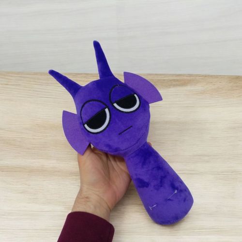 Мʼяка іграшка “Спрункі Дерпл”, персонаж музичної гри “Incredibox Sprunki”, фіолетовий Спрункі з рогами на маківці та двома плавниками з обох боків. Розмір іграшки – 26 см. Завдяки своїм розмірам є чудовим компаньйоном для прогулянок. Виготовлений з штучного трикотажного хутра, бавовни, має синтетичний наповнювач. Рекомендовано для діток старше 3-х років.