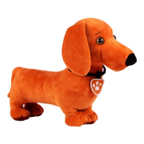 Мила м’яка іграшка у вигляді цуценяти. Навколо шиї у собачки пов’язаний нашийник із фетровим значком. Розмір іграшки 40х26х11 см. Приємна на дотик, виготовлена з безпечних матеріалів.