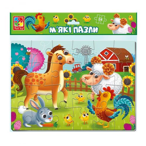 Яскраві м’які пазли на 24 елементів. Великі, м’які і приємні на дотик деталі. Розмір готового малюнка 33 х 23,5 см.