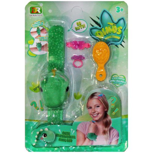 Дитячий набір аксесуарів, головною фішкою якого є браслет у вигляді голови динозаврика. Довжина браслета – 20 см, розмір регулюється. Також у наборі є колечко, шпилька з метеликом і маленький гребінець. Виконано з якісних та безпечних матеріалів.