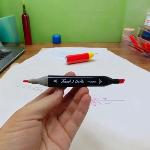 Набір складається з 36 фломастерів різних кольорів. На кожному з них зазначена назва кольору. Двосторонні – одна сторона з тонким стрижнем, для малювання або письма, а інша – з товстим, для виділення тексту. Запаковані в тканинний чохол на замочці.