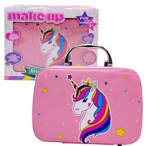 Набір дитячої косметики представлений у компактній валізці з ручкою та декоративним оформленням. Усередині розміщені основні елементи для створення легкого дитячого макіяжу.