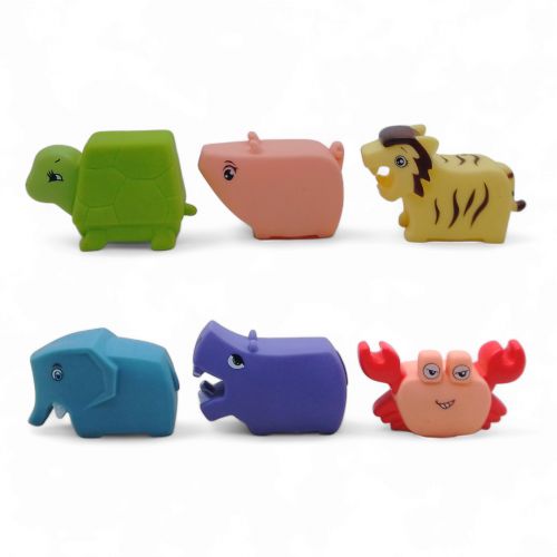 Набір із 6 гумових іграшок-пискавок для дітей, що ідеально підходять для гри під час купання. Іграшки виконані у вигляді кумедних тварин. Ці яскраві та барвисті іграшки привернуть увагу малюка, зроблять купання веселим та захопливим, сприяючи розвитку моторики та сенсорних навичок. Розмір однієї іграшки – 6,5 см.