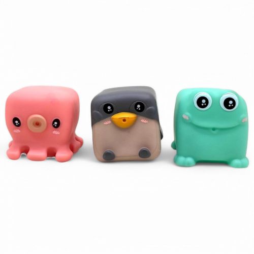 Набір гумових іграшок для купання – це весела та безпечна розвага для малюків під час водних процедур. У комплект входять 3 яскраві квадратні іграшки у вигляді тварин, які легко поміщаються у дитячі ручки. Вони виготовлені з мʼякої, приємної на дотик гуми, не містять шкідливих речовин і добре тримаються на воді. Іграшки сприяють розвитку моторики, сенсорного сприйняття та уяви. Ідеальний вибір для веселого та пізнавального купання! Розмір – 5 х 5 см.