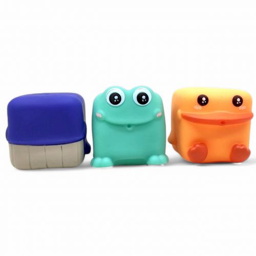 Набір гумових іграшок для купання – це весела та безпечна розвага для малюків під час водних процедур. У комплект входять 3 яскраві квадратні іграшки у вигляді тварин, які легко поміщаються у дитячі ручки. Вони виготовлені з мʼякої, приємної на дотик гуми, не містять шкідливих речовин і добре тримаються на воді. Іграшки сприяють розвитку моторики, сенсорного сприйняття та уяви. Ідеальний вибір для веселого та пізнавального купання! Розмір – 5 х 5 см.