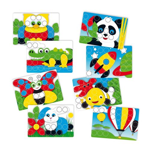 Комплектація: 1. 40 великих фішок; 2. 8 двосторонніх карток; 3. Дошка з ручкою для мозаїки.