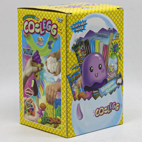 Набір-сюрприз для творчості Cool Egg стане приємним подарунком для дитини. У наборі є: кінетичний пісок, тісто для ліплення, орбізи, стикіз, слайм, штучний сніг, сквіш. У яйці може бути будь-який сквіш із колекції. Набір виконаний із безпечних матеріалів. Призначений для дітей віком від 3-х років.