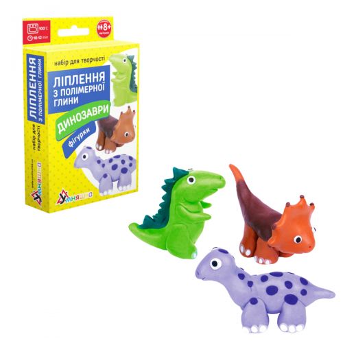 Набір для ліплення з полімерної глини. Полімерна глина – це спеціально створений матеріал, який ліпиться як пластилін, але при цьому твердне в духовці при дуже високих температурах (100 ° C на 10-12 хвилин). Створи яскраві фігурки динозавриків своїми руками.