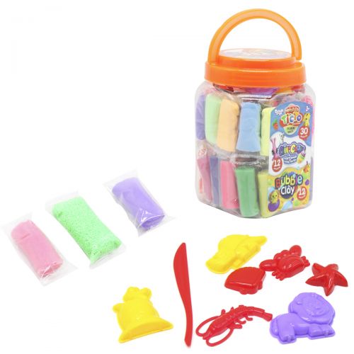 Комплектація: 30 брикетів тіста для ліплення, 12 брикетів повітряного пластиліну, 12 брикетів кулькового пластиліну + стек і 8 формочок